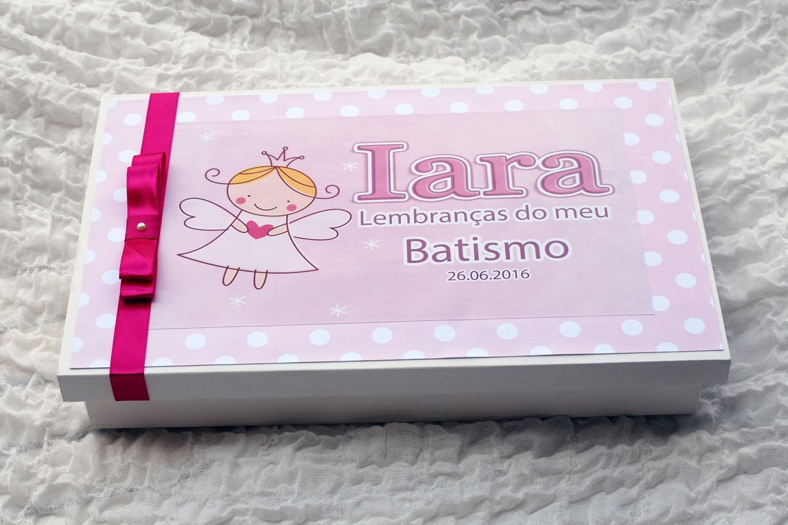 Para o Batismo da Iara criamos; Lembrança adultos, caixinhas personalizadas com tercinho, lembrança crianças, tambores, caixa quadrada com cartões para assinaturas e caixa para depois guardar a vela, a concha e a toalha.