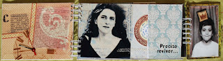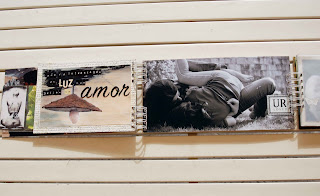 transparência"journey" por cima da foto, é mais uma página. As fotos quadradas costuradas à máquina