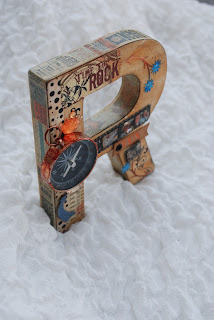 Letra personalizada com técnicas de scrapbooking. Usei gesso para texturas, muita washi tape, rub-ons, tintas de álcool, tintas distress, embossing a quente, embelezamentos vários e a história de uma aventura.